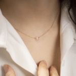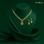 نیمست طلا شامل گردنبند و گوشواره با طراحی ظریف و کلاسیک.